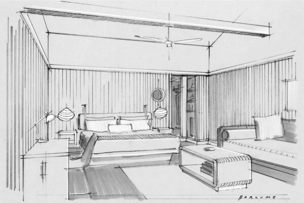 All drawings start by hand, and everything we build is colluded with the artisans and makers who bring the vision to life. Mies Van der Rohe’s Brno chair finds new life recovered in a woven natural raffia print by contemporary textile maestro Aissa Dione, of Senegal. Inspired by a Ming-era console sourced in Paris – the meander motif, in some tongues the Greek key – we are endlessly inspired by its universal appeal.